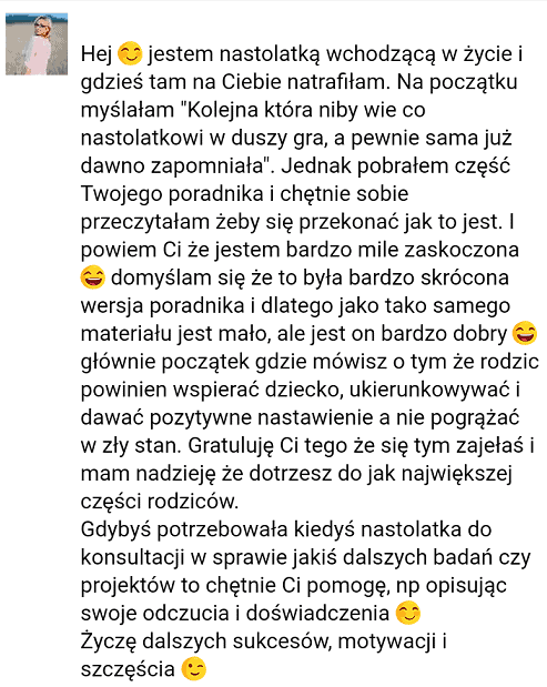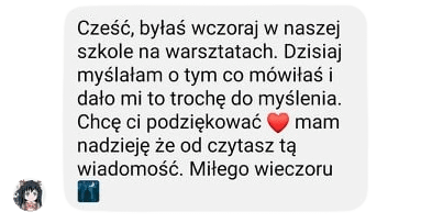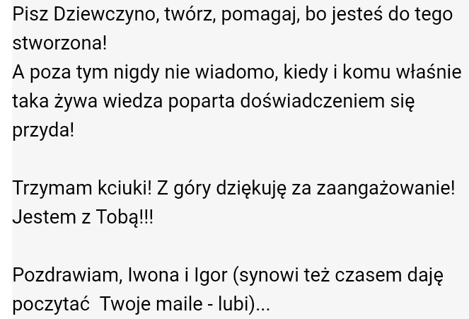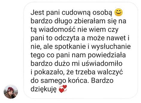 Każdy jej przekaz, motywacja i słowa wsparcia są szczere, budujące.